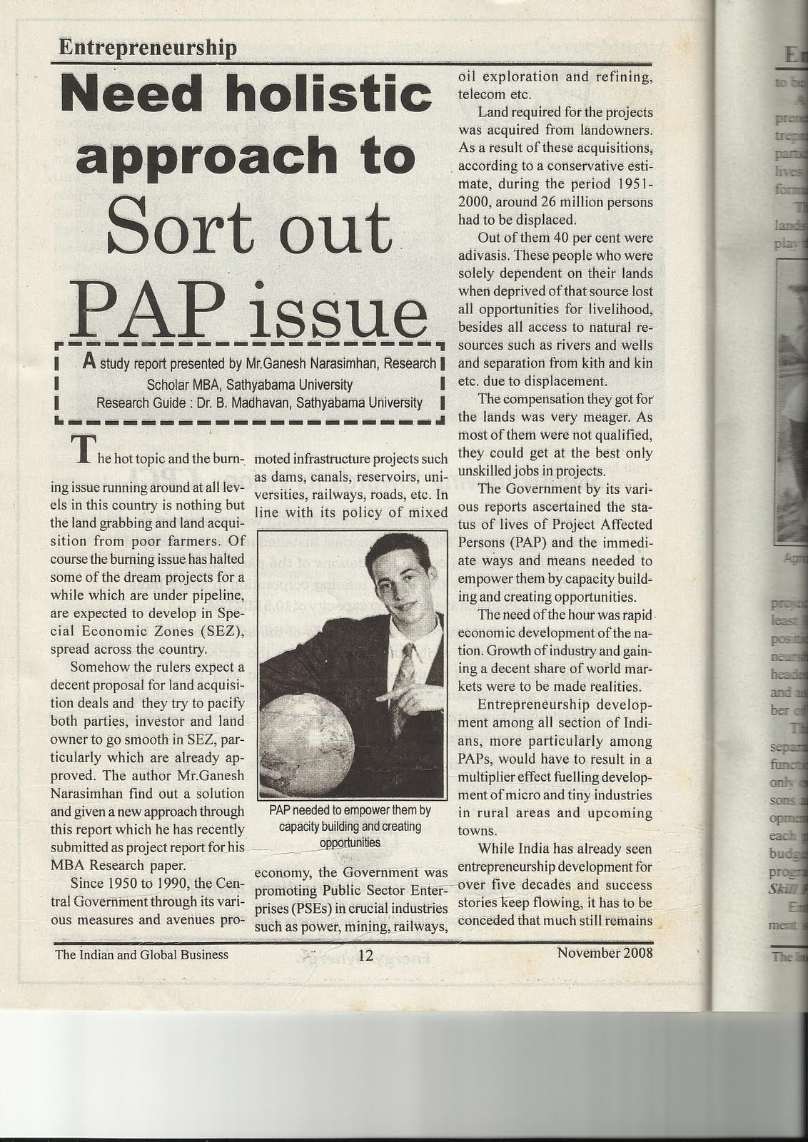 - A Study Report - Need holistic approach to Sort out PAP issue The Indian and Global Business November 2008 Vol 12 No 1 Issue Regd No. TN/PMG (CCR)/37/4/06-08 WPP; 204/06-08 Page12-14